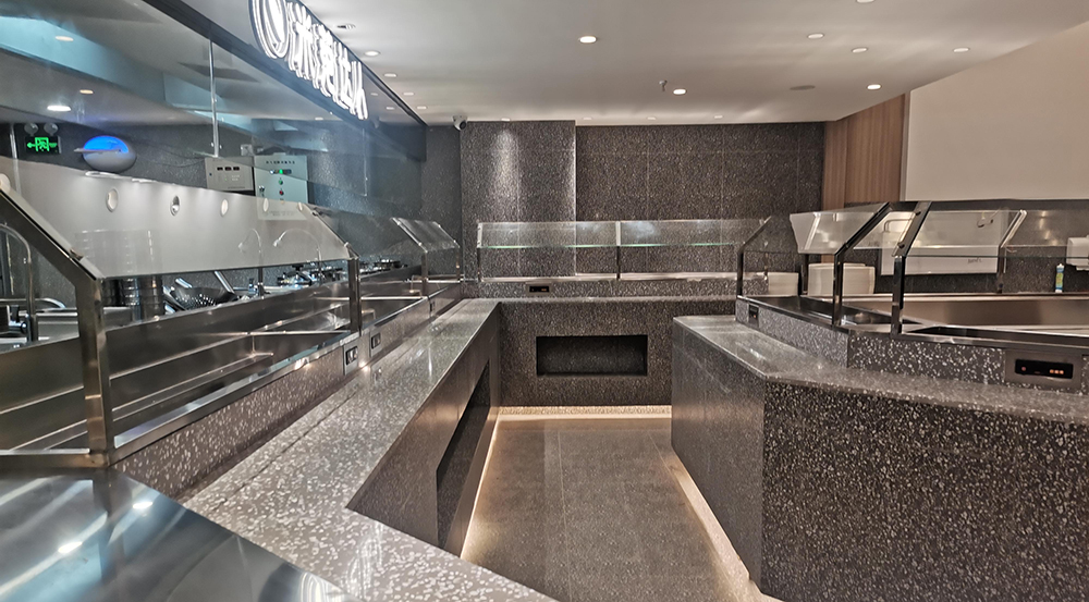 通过调研分析,我们希望打破常规模式采用自选称重的方式,不仅增加客人餐盘上的食材品种,也减少服务需求,为增加高峰时期的人流速度,我们规划了2条自选动线,以此提高高峰时期的效率。