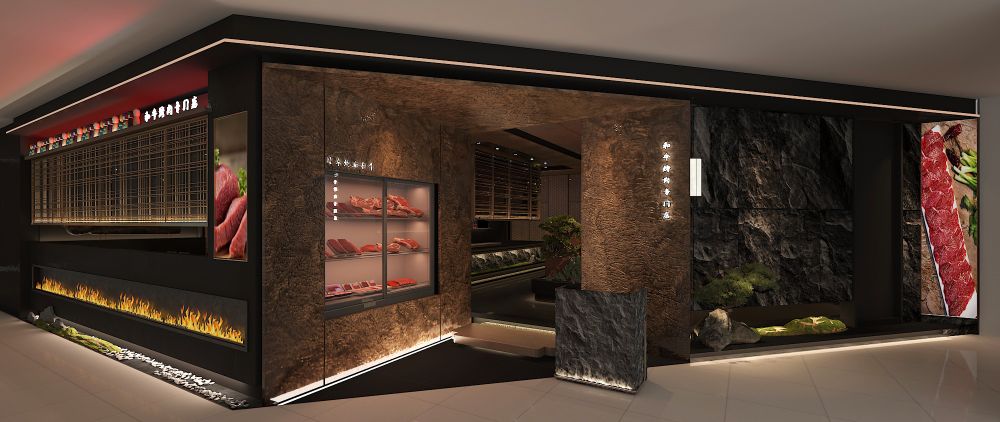 结合食材和制作方式的属性,选用黑色做为整个空间的主色,不同触感的黑构筑出极具仪式感的体验动线,