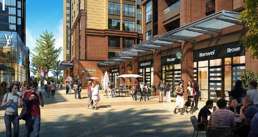 这种地方占地面积大,购物,休闲,娱乐等设施一应俱全,是一种开放式商圈。