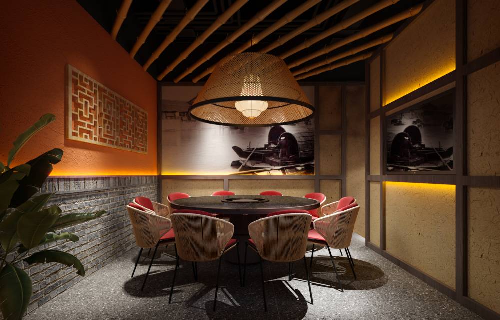 本案设计师采用了比较传统的一些装饰材料去做这个餐饮,希望能内敛含蓄的去诉说和表达,希望客人可以在空间里面慢慢的体会和感受我们巴蜀风的火锅文化。