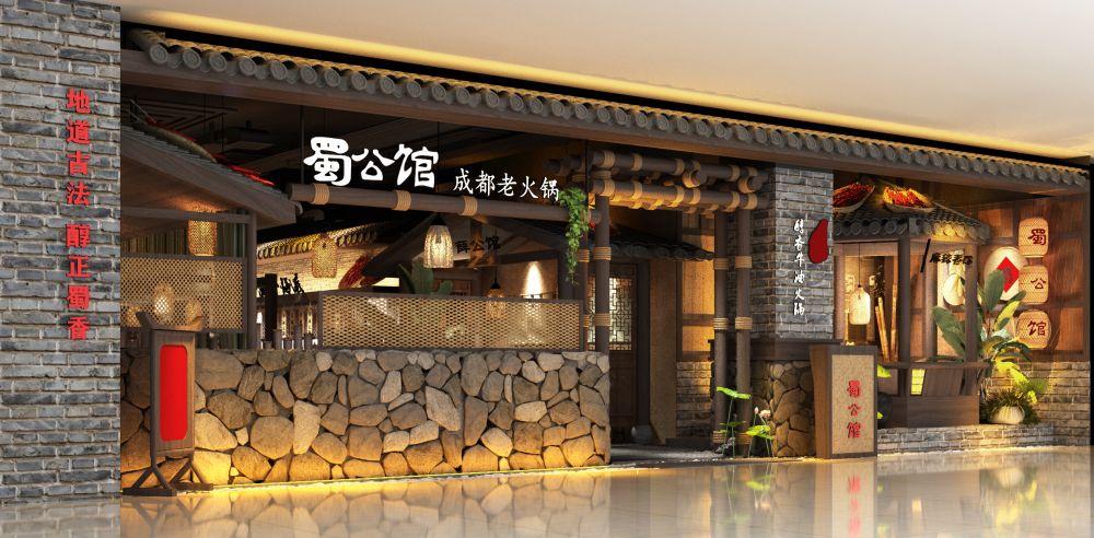 蜀公馆成都老火锅起源成都,作为一家老牌的火锅店,在今天浮躁和竞争非常激烈的餐饮环境下,经营者希望坚持做一家老字号的传统火锅,保留老火锅的特质气息的前期下能在室内创造传达出巴蜀的文化元素。