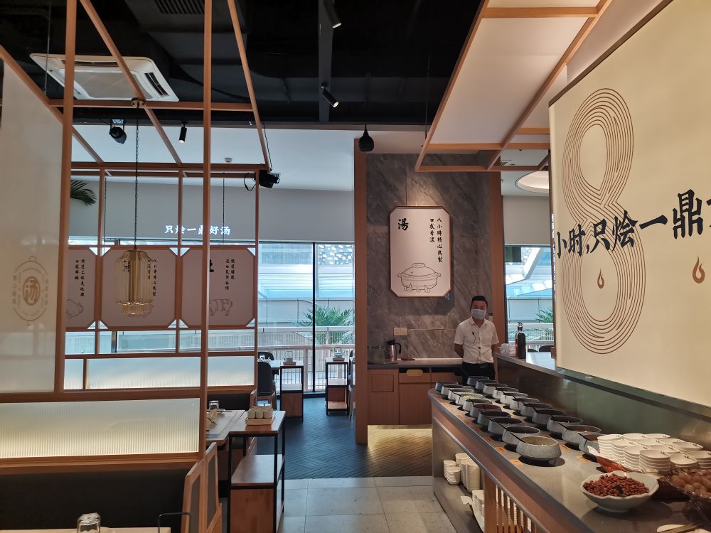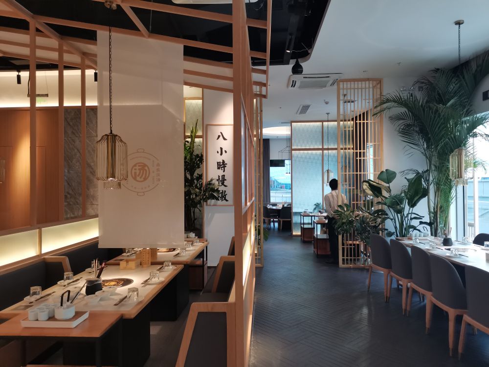 本案位于杭州未来城华夏之心,为了强化健康养生清淡概念,设计师以锅底的汤色为灵感,用原木与白色为主调,希望传达暖胃暖心舒适淡雅轻松愉悦的就餐体验。旨在打 造健康而精致的餐饮体验空间,为杭州的食客们准备一段舌尖上的潮汕美食之旅。