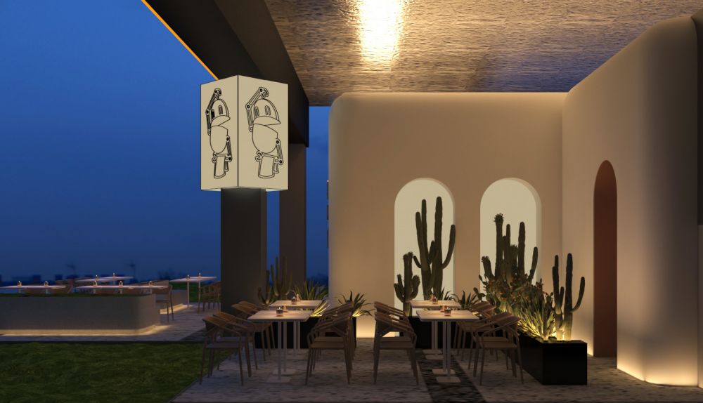 外摆区的设计模糊了室内外空间的界限,满足运营功能的同时,将顾客与街道联系到一起。通过情景式的互动跟消费者建立情感交流,使之沉浸在商业街区的悠闲氛围中。