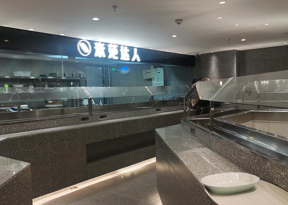 通过调研分析,我们希望打破常规模式采用自选称重的方式,不仅增加客人餐盘上的食材品种,也减少服务需求,为增加高峰时期的人流速度,我们规划了2条自选动线,以此提高高峰时期的效率。