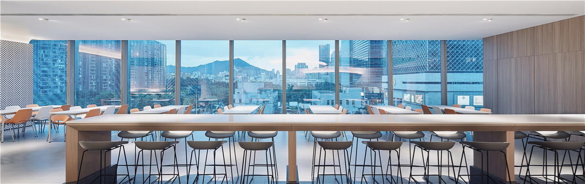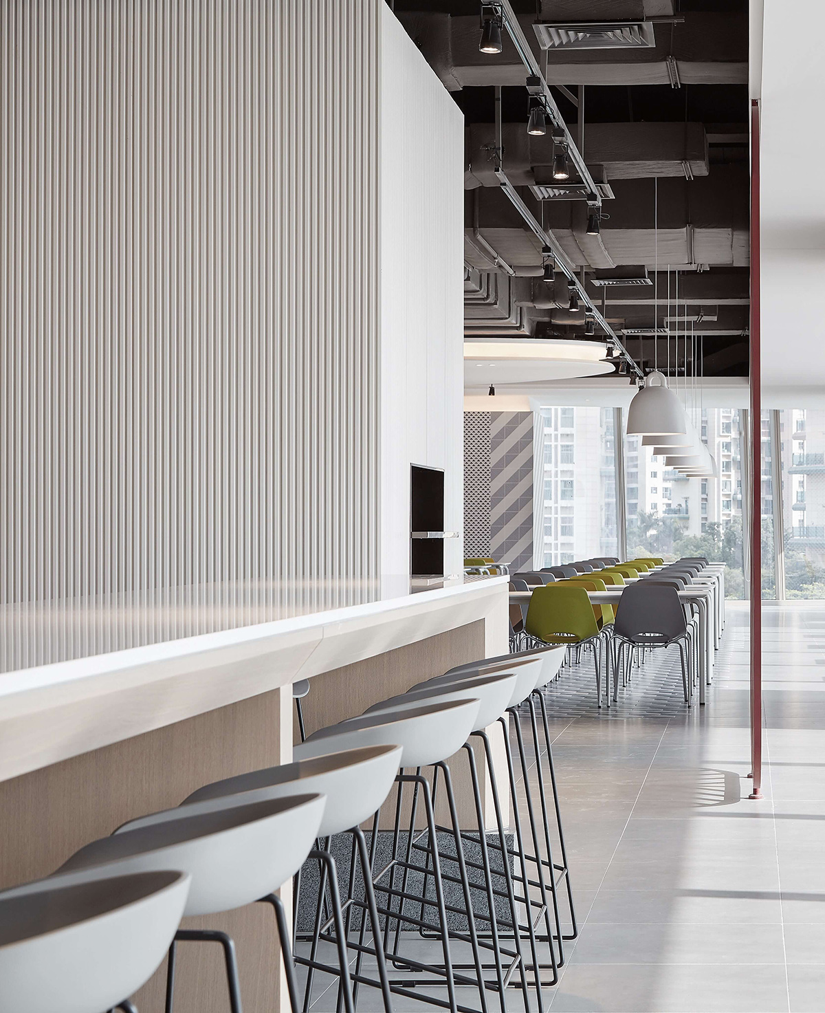 将时尚现代、摩登与节奏感融入简单开放的空间,把深圳湾一号标志性的绝美的都市无遮拦海景与阳光风情最大化,对“员工食堂”的概念进行一次全新演绎。