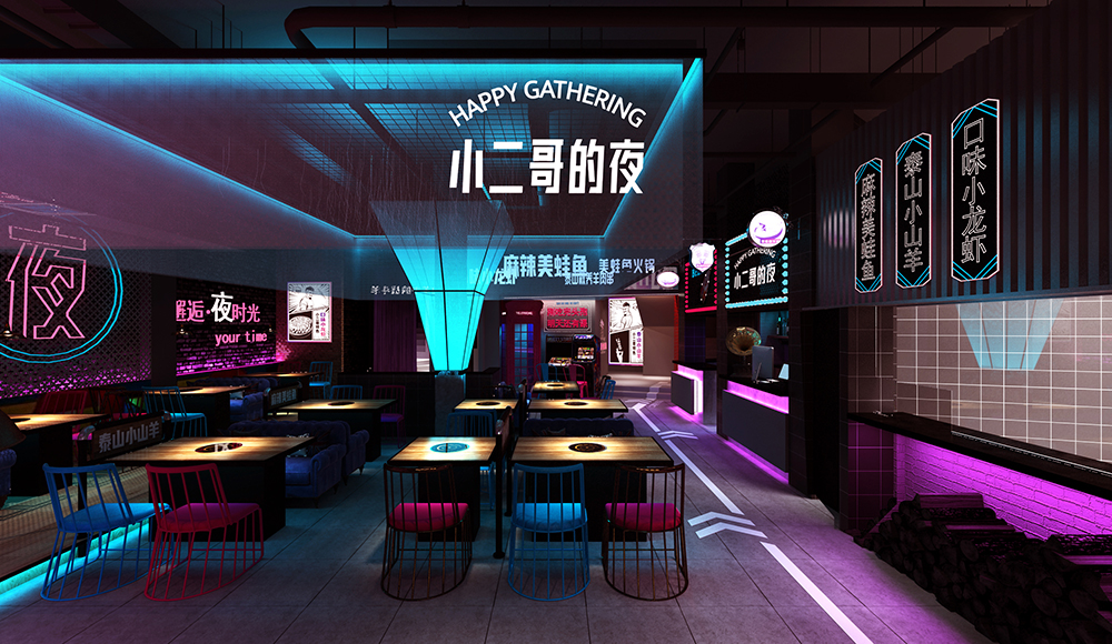 品牌前期策划时把“小二哥”作为品牌主名称,古代把饭店跑堂称呼为小二,加上“哥”明确了角色,创立独立人物IP,加上夜,表达了晚上营业为主--“天黑你再来”