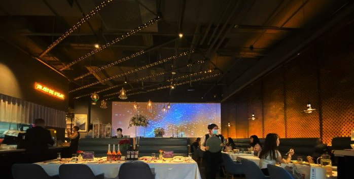 日暮,灯光伴随音乐,情景转换, 微醺小酌 的氛围在空间中弥漫开来。