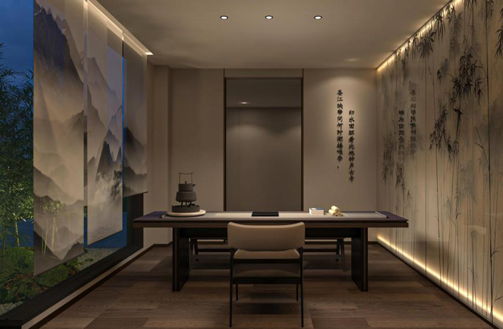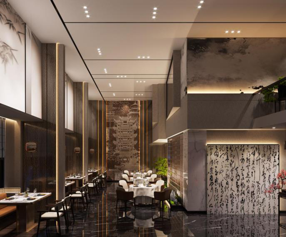 因此设计师遵循周边区域文化底蕴,以“朦胧”为魂,融合传统江南建筑意境与现代设计理念,运用虚与实、光与影、动与静等多种艺术手段,塑造出“一曲朦胧江南意”的雅致诗意空间。
